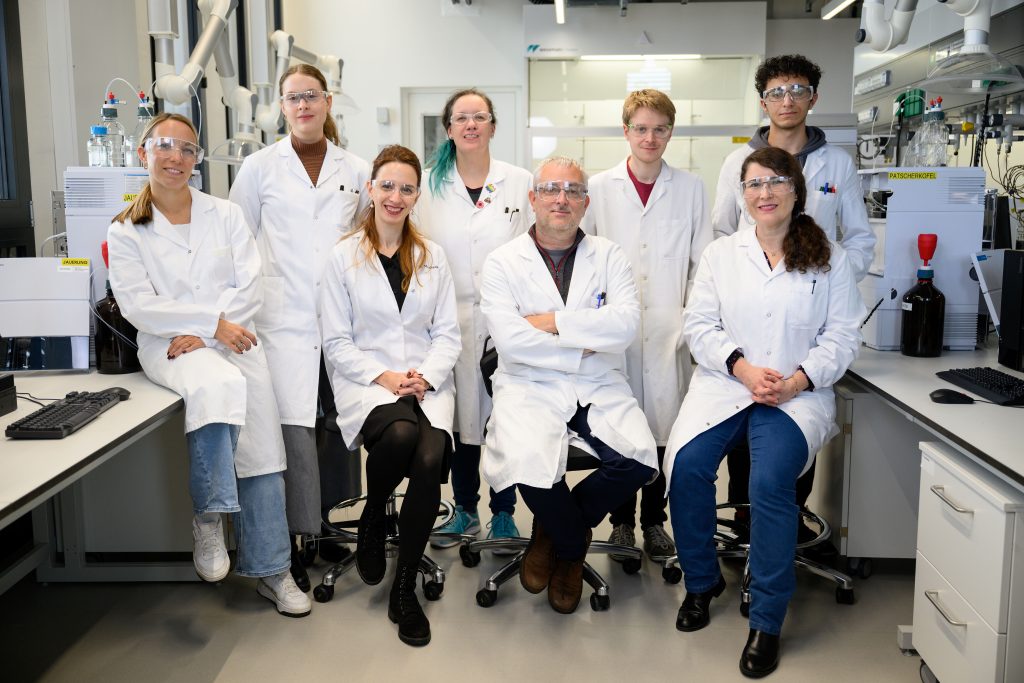 Yolanda Salinas Soler, hier neben Institutsleiter Uwe Rinner und jungen Nachwuchsforscher*innen, gibt ihren Optimismus gerne weiter: „Ich sage ihnen, sie sollen nicht aufgeben, dass Frustration normal ist. Manche Probleme erfordern Ausdauer, aber Schritt für Schritt kommt man ans Ziel.“